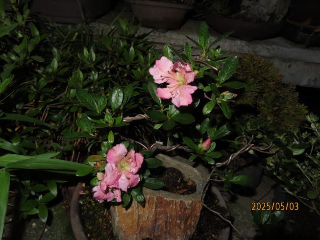2025年(令和 7年 5月 3日) 美裕の花咲きました 系統 若恵比寿の枝変わり 花形 二重咲き・中の弁が切れ咲き・まれに采咲き・袴咲きが交じる・ 花柄 桜色の地合でまれに濃い色もる 小輪咲き さつき研究 平成さつき大辞典から 文面お借りしました |