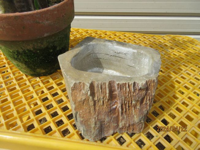 この石鉢の寸法は 間口120mm 奥行100mm 高さ 70mm 厚さ 10mm 重量 ❓ 底穴 2個 |