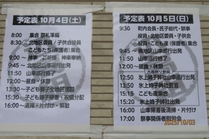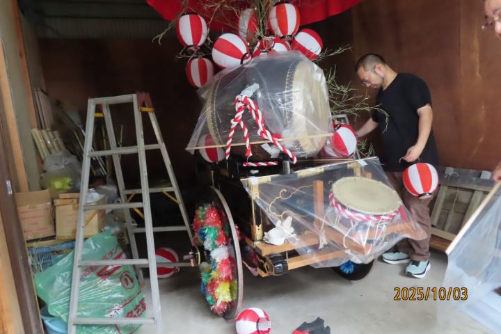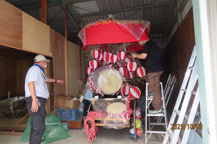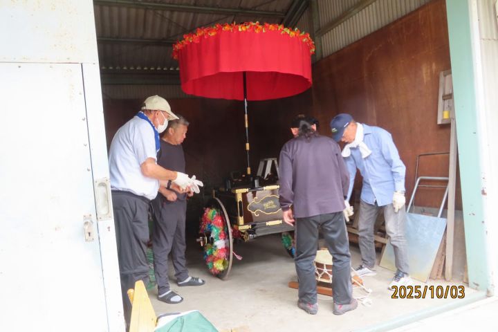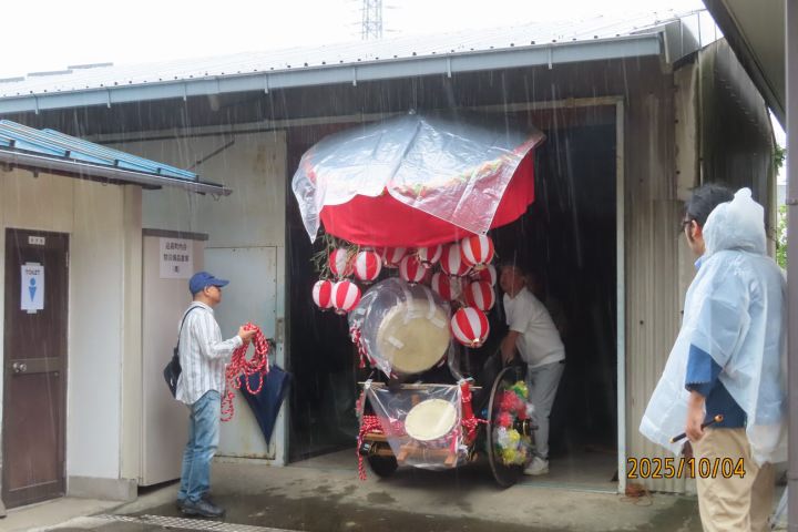 10月 4日(土)雨 第一・第四町内山車巡行中止・獅子巡回は獅子頭をだかえて巡回