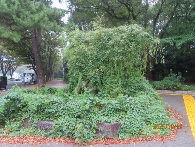 六角堂柳の老木を撮る 今年はつる草に覆われて 見る影もなかった 2024年10月12日撮影のページへ |