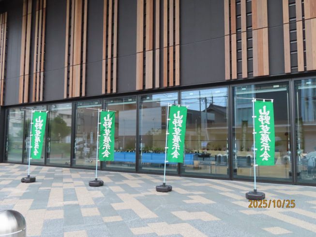 東海市創造の杜交流入り口脇に 山野草展示会ののぼり |