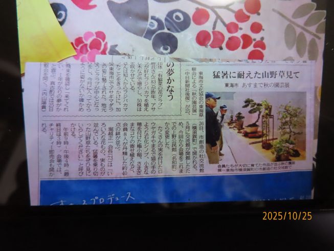 10月25日 中日新聞知多版に掲載紙面を 長女がメールで送ってくれました 私は緑区民のため新聞記事がない・・・・ 新聞記事を見て 多くの 愛好者の方々が覗いてくださいました |