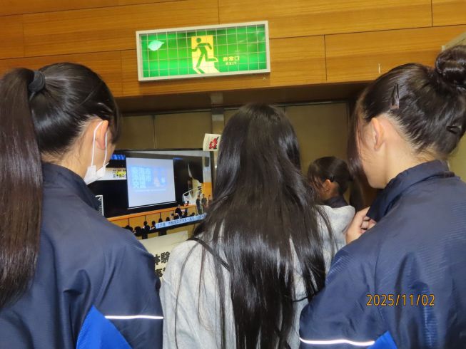 中学生の沖縄研修体験ビデオ見る方々 |