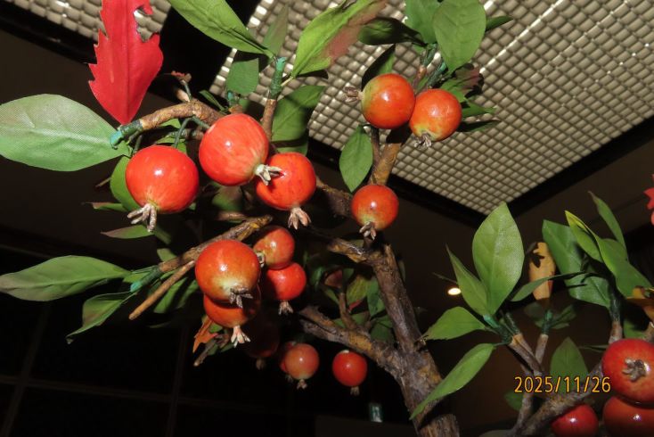 呈茶処に ちょっと見 実なり盆栽が よく見ると 造花盆栽でした |